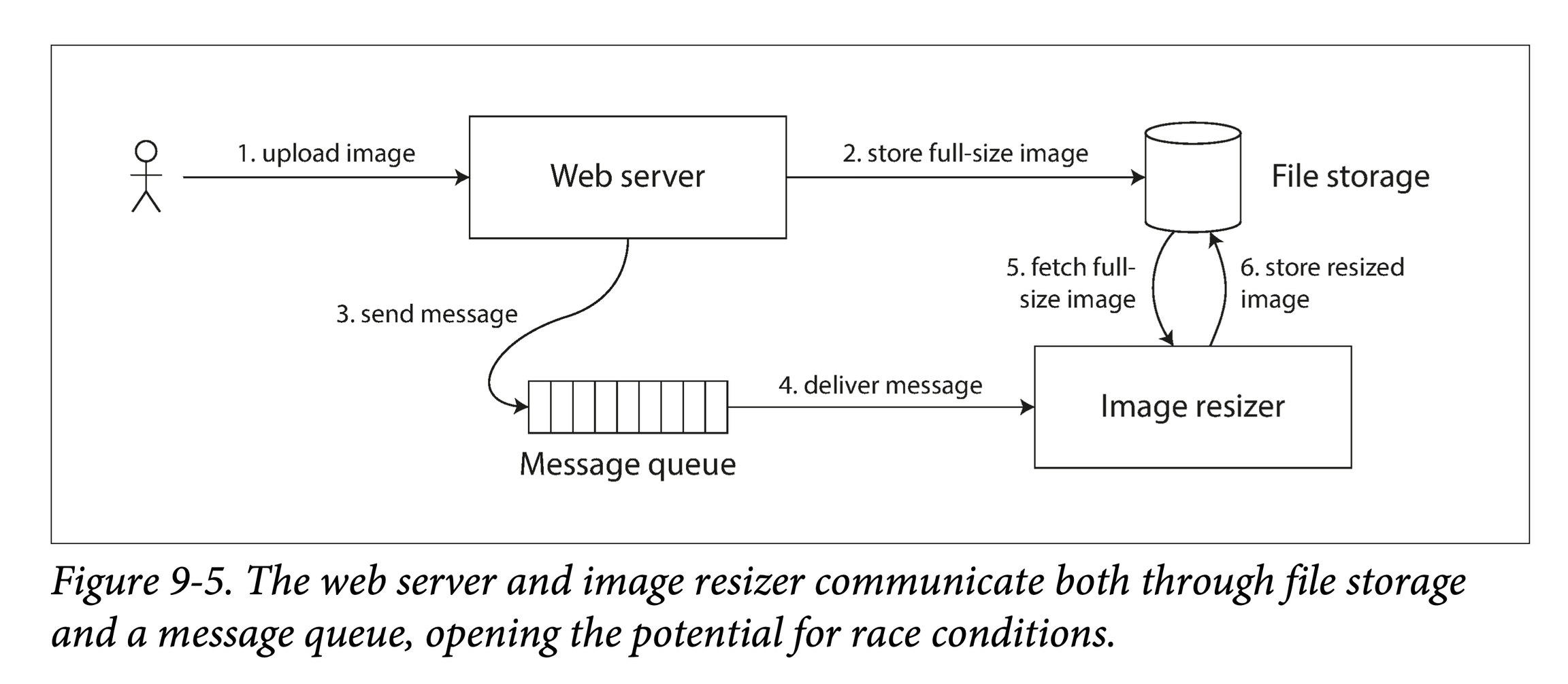 全序广播是异步的:系统保证以同样的顺序交付消息,但并不保证消息的交付时刻(即,有的消息接收者间可能存在着滞后)。 与之相对,线性一致性是一种新鲜度保证:读取一定能看到最新成功的写。
