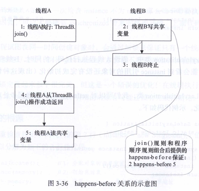 join()规则:如果线程A执行操作ThreadB.join()并成功返回,那么线程B中的任意操作happens-before于线程A从ThreadB.join()操作成功返回。