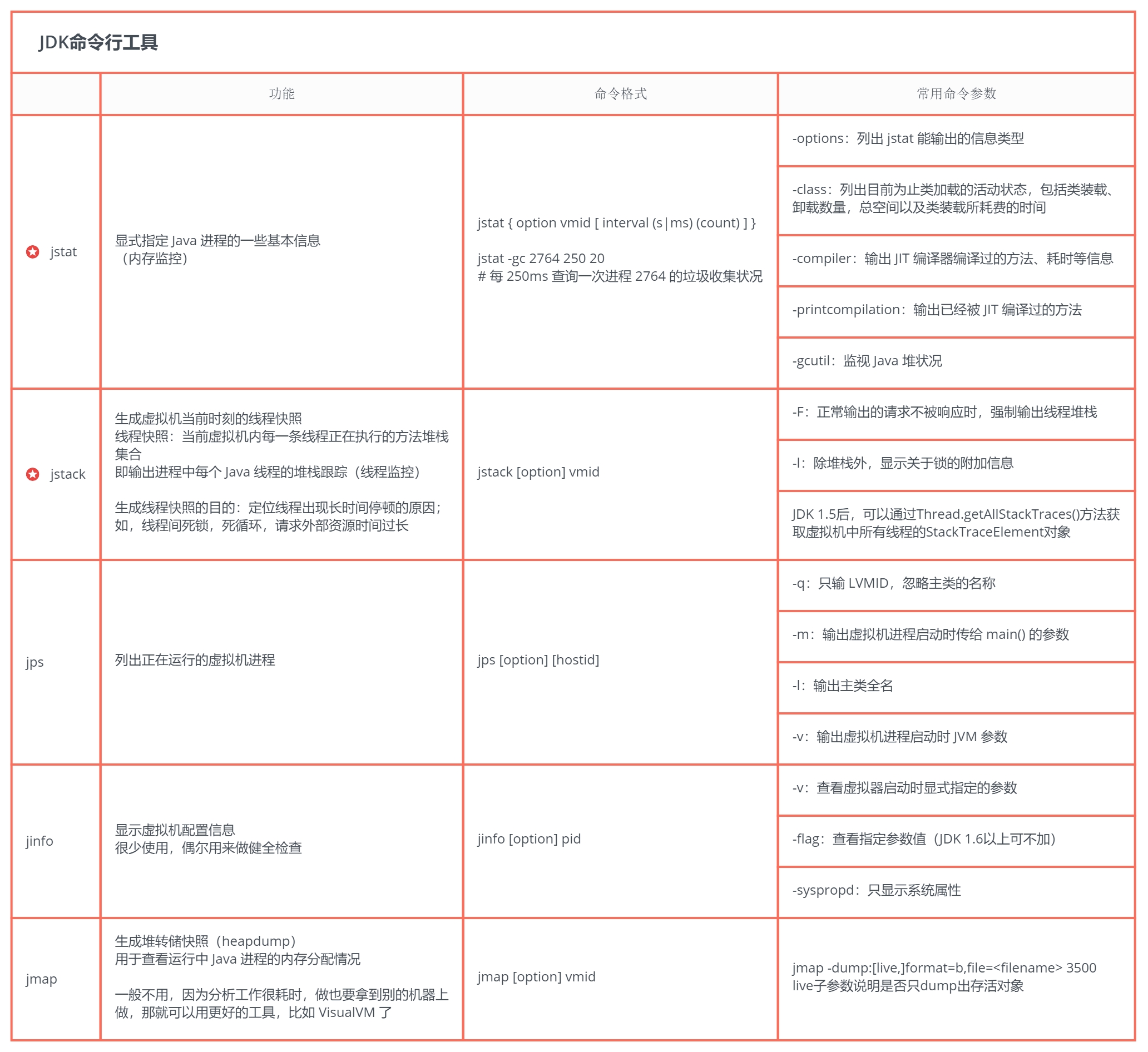 在没有 GUI,只提供了纯文本控制台环境的服务器上,jstat将是运行期间定位虚拟机性能问题的首选工具,以处理延迟、卡顿的状况。上一章讨论的垃圾收集信息,即可通过jstat -gcutil vmid 进行显示。