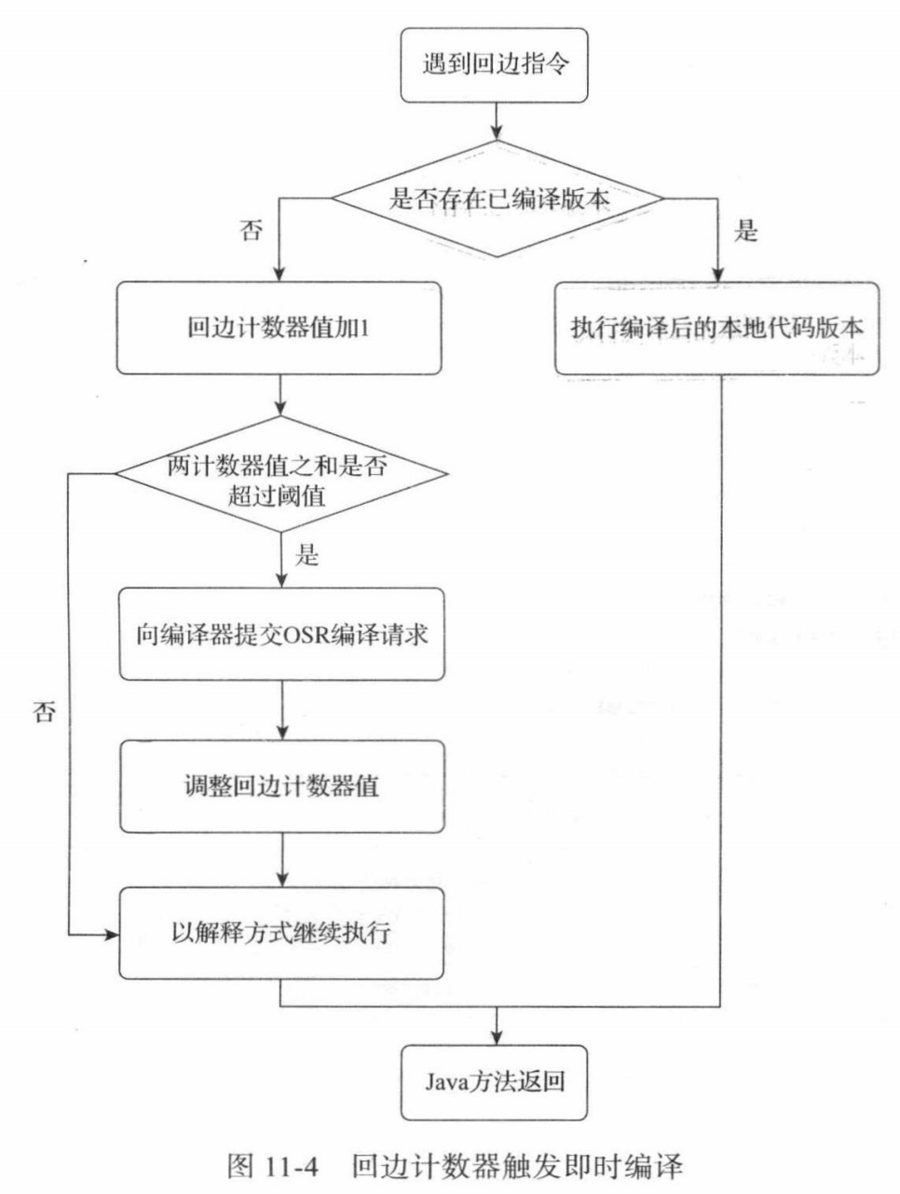 虚拟机在代码编译未完成时会按照解释方式继续执行,编译动作在后台的编译线程执行。