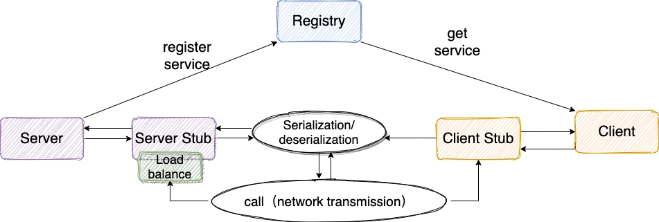 Client Stub(桩):代理类。负责序列化调用方法、类、方法参数等信息和消息发送,或者反序列化返回体。