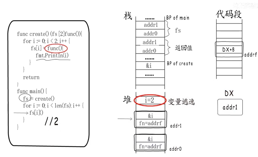 下图是一个闭包和变量逃逸的例子: