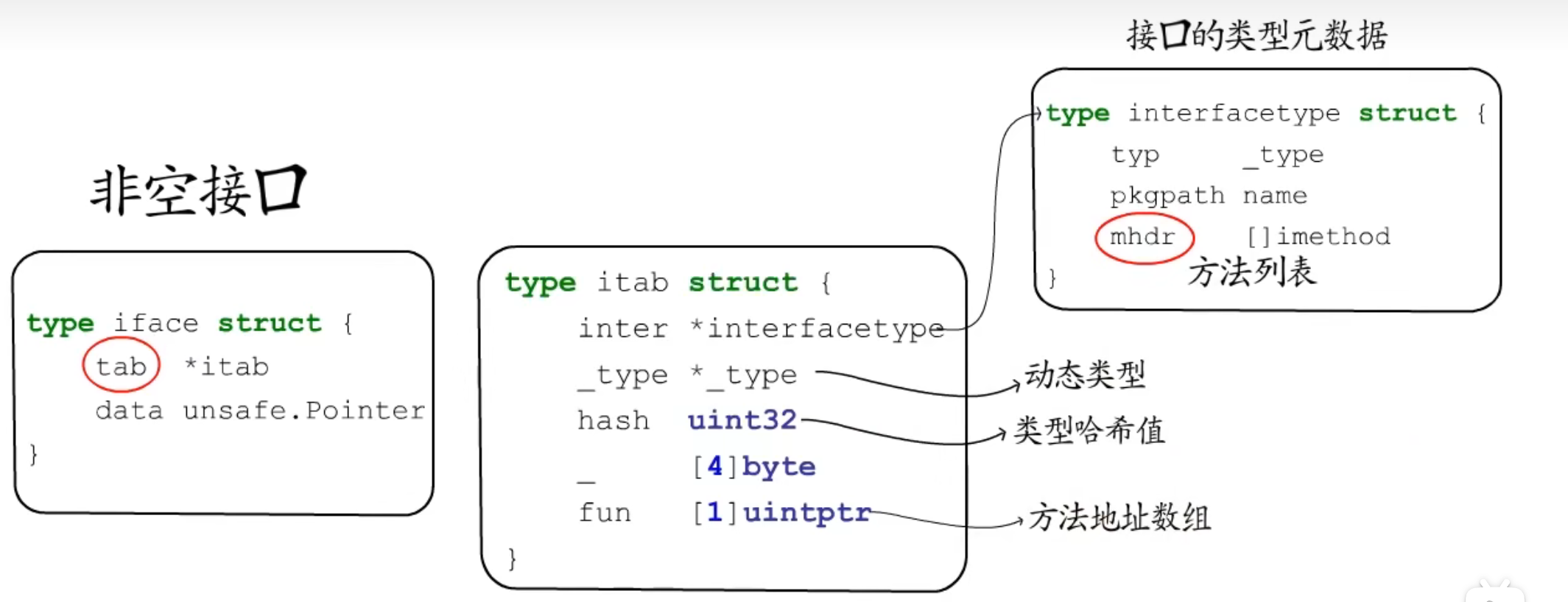 上方的iTab缓存哈希表,对于不存在的类型断言,也会缓存占坑,设置fun[0]=0表示不存在。