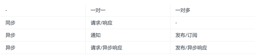 C/S交互方式:根据每个客户端请求被一个或多个服务实例处理,分为两类:一对一 和 一对多。根据同步和异步,可以分为: