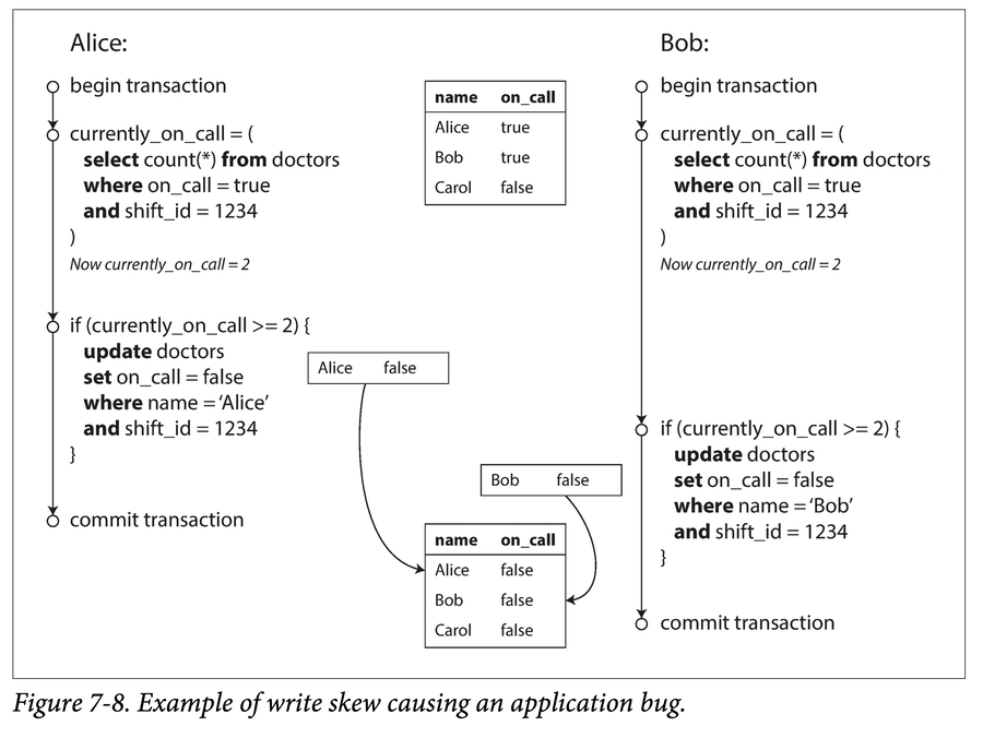 写倾斜(Write skew) 可以理解为多对象的更新丢失,由 MVCC 实现的快照隔离级别的特有的缺陷,它是由于读依赖同一个不变的快照引起的。