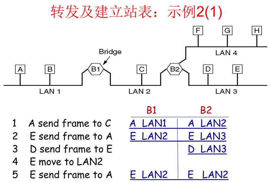 自学习过程: 主机 A 向主机 B 发送数据帧时,交换机把主机 A 的接口的映射写入交换表中。如果交换表没有主机 B 的表项,那么主机 A 就发送广播帧Flooding,主机 B 向 A 回应该帧。 MAC转发表也是本地的,只在单个广播域(即一个IP子网内)有效。