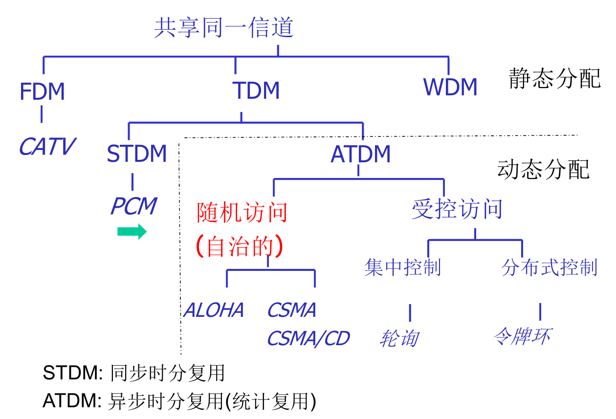 有两种控制方法进行广播信道的协调,以避免发生冲突:一是使用信道复用技术(本节),一是使用 CSMA/CD 协议。