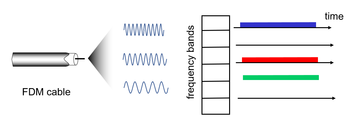 FDMA(frequency division multiple access),each station assigned fixed frequency band.
