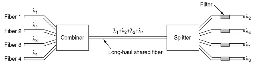 复习: 波分复用: