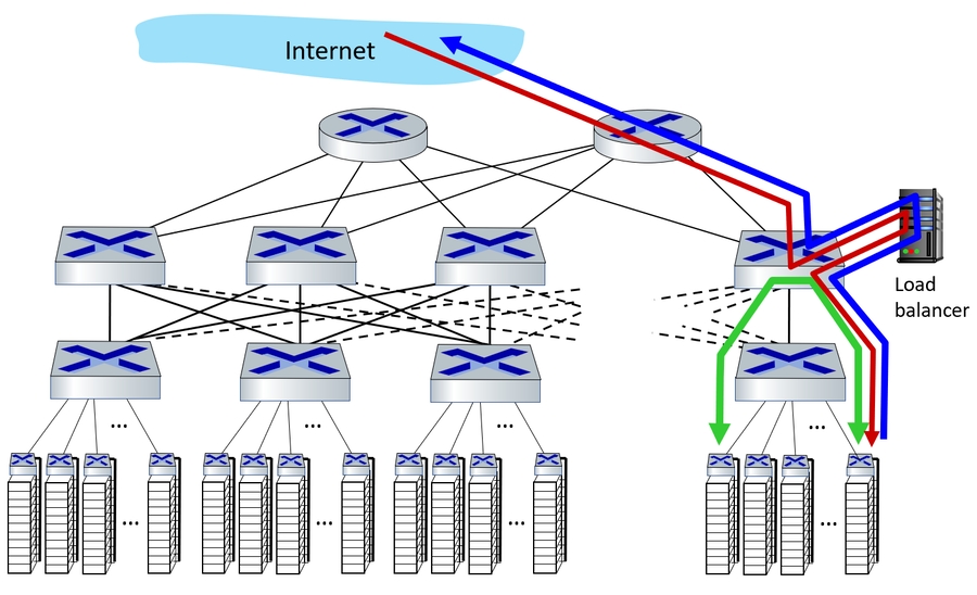 在数据中心中,数据中心通常应用路由器和交换机等级结构,有一些有趣的机制保障可用性。