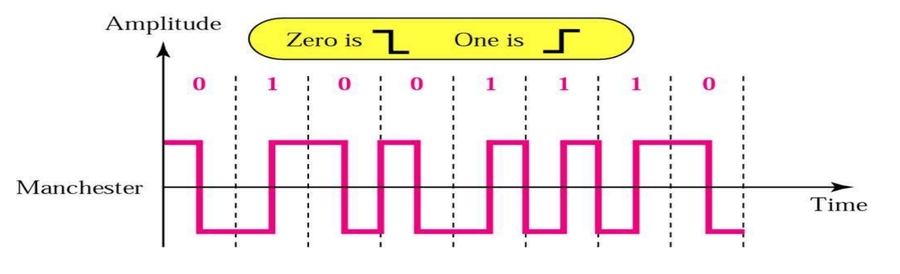 Manchester 曼彻斯特编码:0:在位时间中从高到低跳转;1:低到高。IEEE 802.3局域网使用