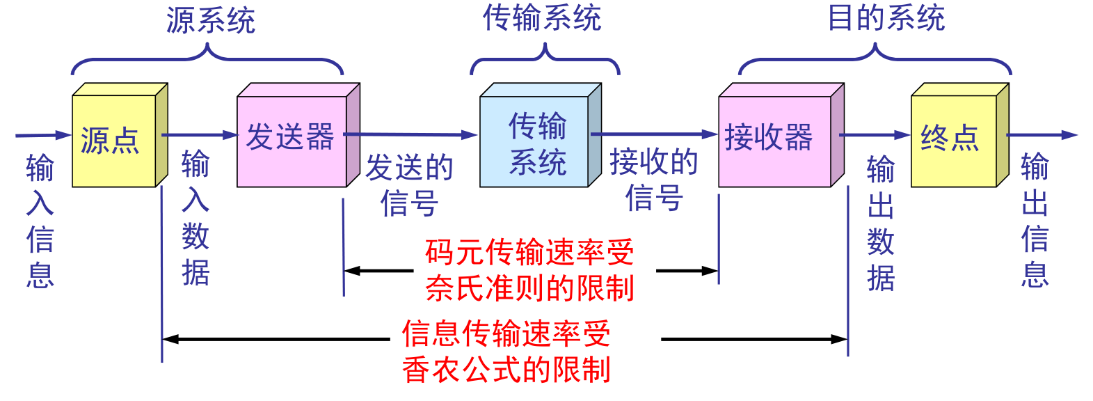 奈奎斯特公式(内忧):信道无噪下理想最大数据速率 = $2 * B * log_2V$ (B - 带宽,V同上)