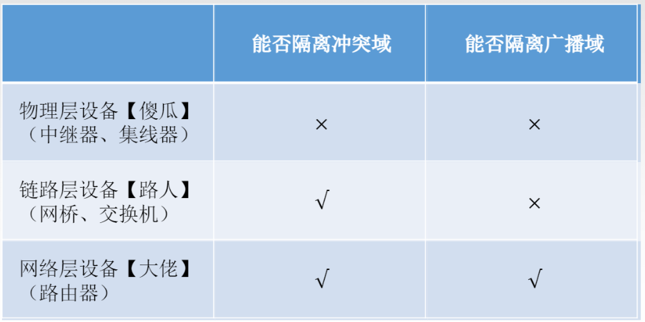 Repeaters(中继器):更早的物理层设备,放大信号、对信号整形,以减小信号失真和衰减,使 信号传播得更远,扩展以太网段。